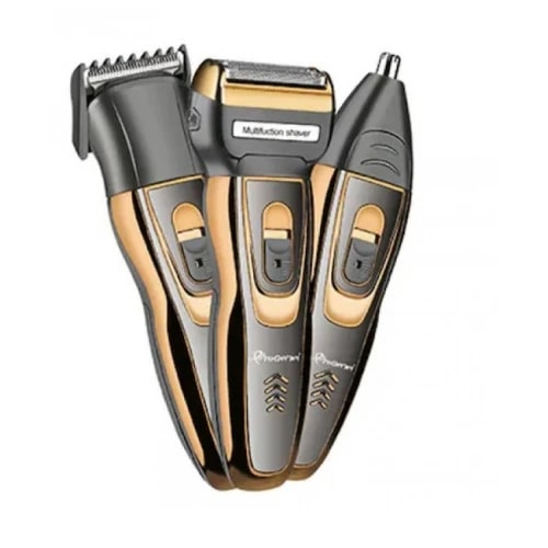 Aparatul de tuns multifunctional 3 in 1 este dotat cu 1 buton on/off si vine insotit de 2 capete interschimbabile.