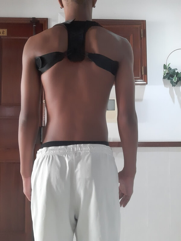 Atat eu cat si fiica mea am incercat aceasta orteza. Ea are bustul de 98 de cm si a putut sa o poarte, dar i-a fost incomoda la subrat si a dat-o jos foarte repede. Dimensiunea toracelui meu este de 112 cm si a trebuit sa adaug piesele de extensie pentru