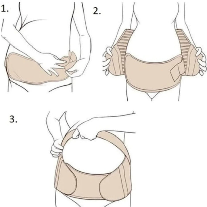 PASUL 3: Atasati cureaua, pe care o puteti fixa in zona de deasupra burticii cu velcro. Dar numai daca doriti ca suportul pentru burta sa nu alunece.Sunteti gata, este atat de simplu!