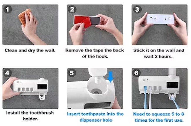 Dozatorul pentru pasta de dinți cu sterilizator UV are un design elegant și compact, ce se potrivește perfect în orice baie sau bucătărie.Cu un sistem de dozare precis, acesta permite utilizatorilor să elibereze cantitatea optimă de pastă de dinți într-un mod igienic și fără risipă.