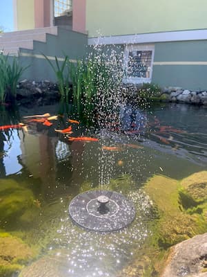 Aceasta este o fantana mica dar fabuloasa. A sosit intr-o saptamana si literalmente a pus-o in apa si a pornit. Are nevoie de lumina directa a soarelui pentru a functiona, dar atunci cand functioneaza, este foarte puternica si este un element minunat