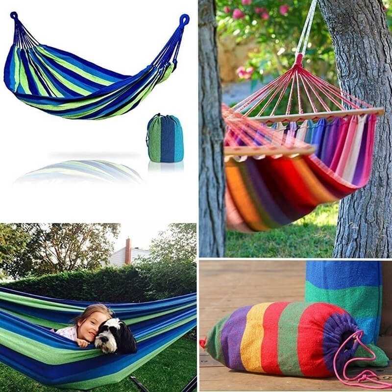 Odihnă confortabilăConfecționat din materiale moi și durabile, hamacul va balansa plăcut, oferind odihnă confortabilă și relaxare. Hamacul poate fi utilizat și în calitate de pătură pentru picnic.Instalare ușoarăMontează hamacul rapid, grație sforii pentru fixare incluse în set și sistemului simplificat de instalare.Prietenul tău în timpul călătoriilorSacul pentru păstrare inclus permite depozitarea și transportarea ușoară a hamacului. Ia-l cu tine în călătorii și relaxează-te oriunde ai fi.Calitate superioarăConfecționat dintr-o țesătură densă și durabilă, hamacul ChillSwing va fi prietenul tău fidel în zilele călduroase de vară.