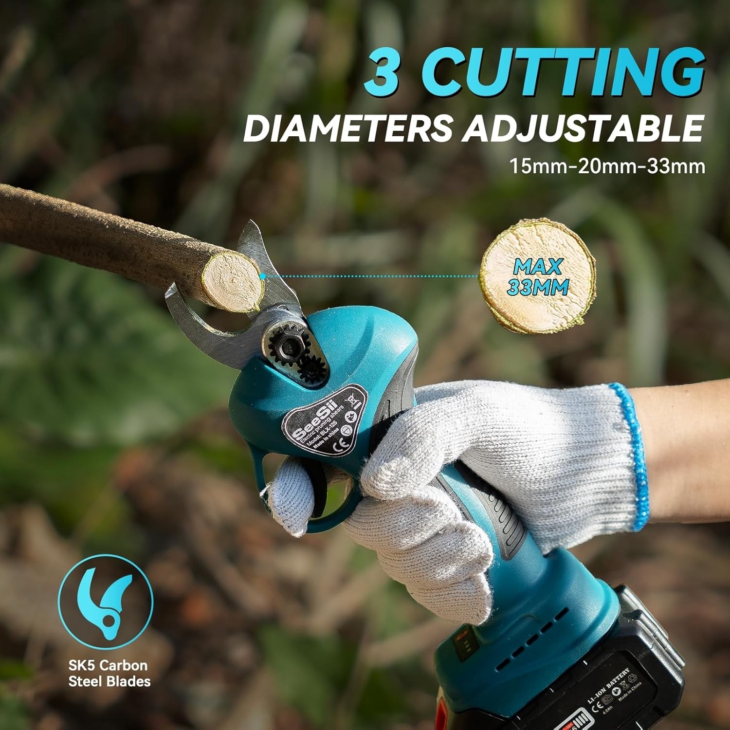 Uneltează inteligent cu acest dispozitiv 2 în 1 Seesii, care combină o mini drujbă electrică și o foarfecă de tuns crengi. Compact și ușor de utilizat, este ideal pentru tăierea lemnului subțire, toaletarea pomilor și lucrări de grădinărit.