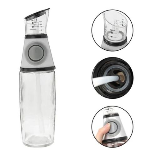 Pur si simplu apasati butoanele de silicon aflate pe fiecare parte a pulverizatorul si continutul recipientului din sticla va fi trecut in partea gradata a dispenserului putandu-se astfel sti in permanenta cantitatea exacta de otet sau ulei pe care urmeaza sa o turnati.