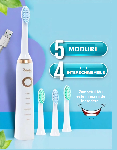 Periuta de dinti electrica, 5 programe speciale de spalare, 4 capete de schimb