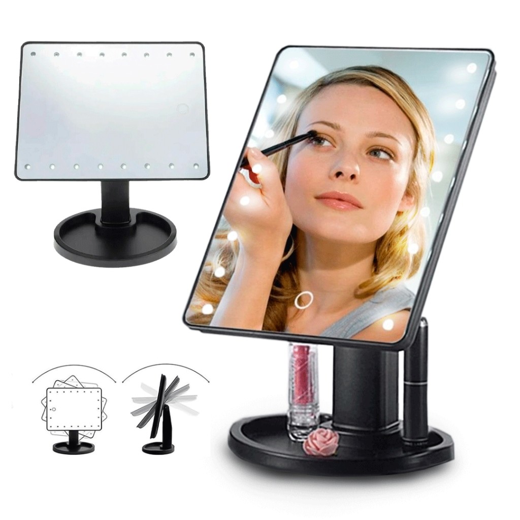 - OGLINDA LED cu buton tactil, este foarte utilă pentru aplicarea machiajului, pieptanarea părului sau pensarea sprâncenelor.