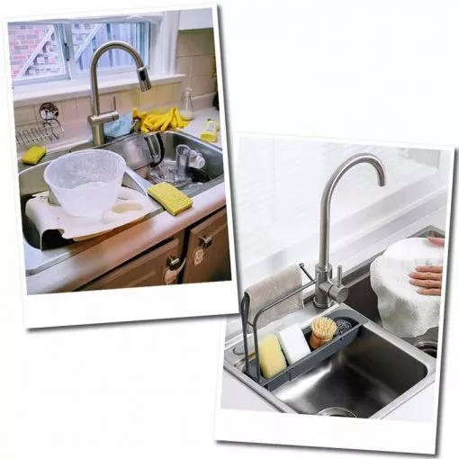 SINKITOP este un suport pentru chiuvetă extensibil cu care puteți organiza și elibera spațiu pe blatul bucătăriei într-un mod foarte ușor.Spațiu pentru toate accesoriile de curățare