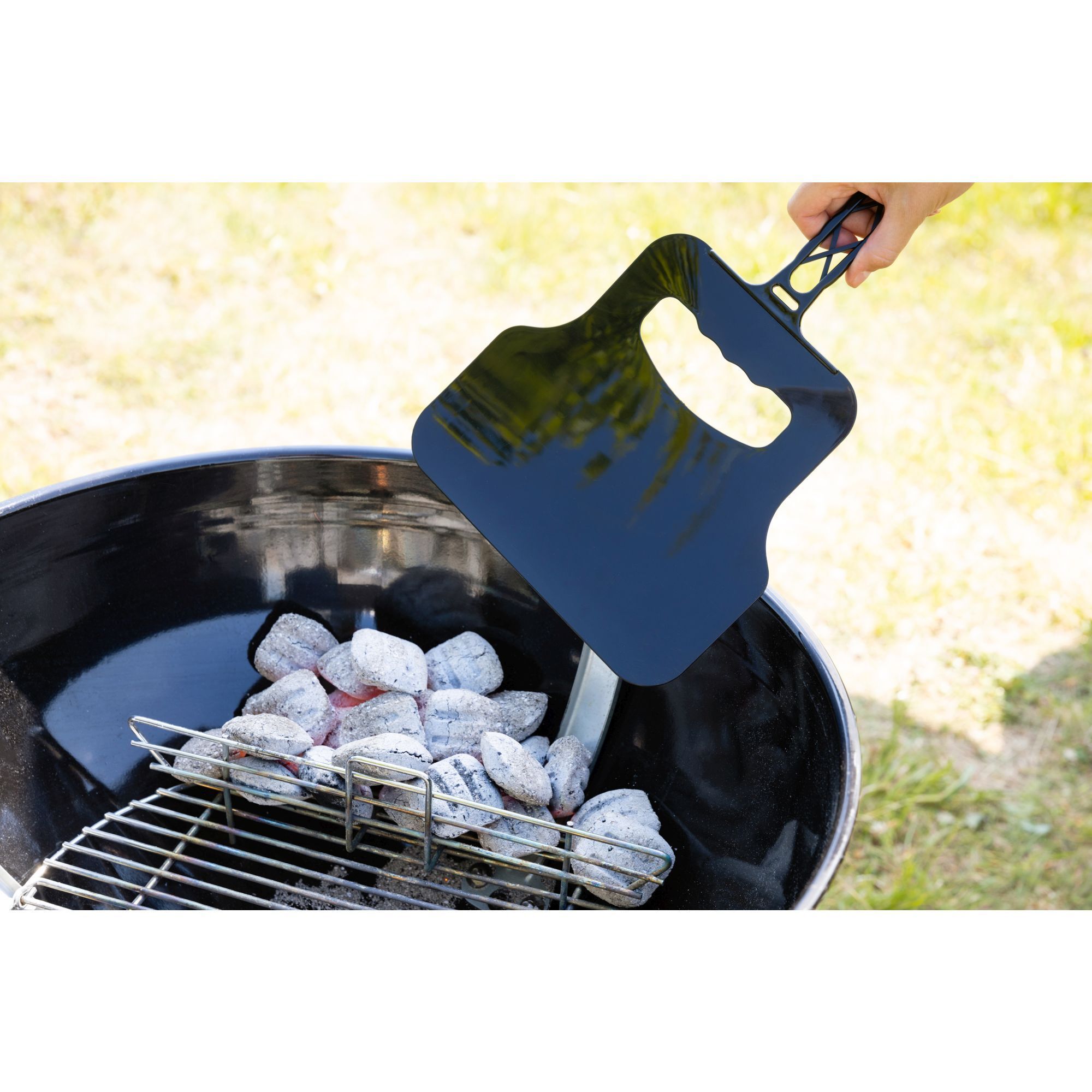 Echipata cu un maner robust din plastic, usor de transportatEVANTAI DIN PLASTIC PENTRU GRATAR