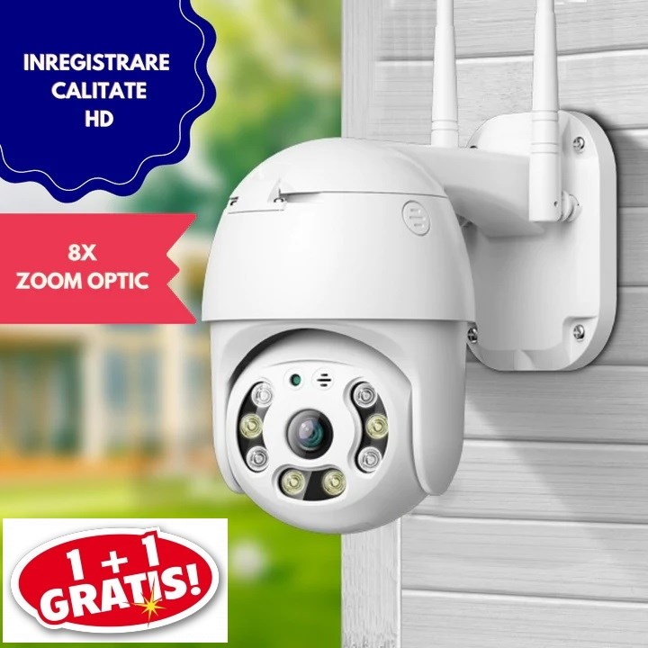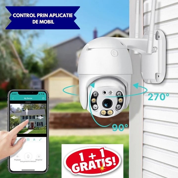 OFERTA 1+1 CAMERA DE SUPRAVEGHERE WI FI EXTERIOR, ROTATIVA 360°, CU SENZOR DE MISCARE
