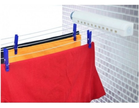 - Se Montează Simplu: Toate accesoriile necesare se află incluse în pachet. Cele 2 bare se montează pe perete cu ajutorul accesoriilor, iar cele 5 sfori se desfășoară numai când ai nevoie să întinzi rufele. Lungimea sforilor este de 3,2m, fiecare sfoară suportând în jur de 7-8 articole. Între sfori e o distanță de 7.5 cm pentru ca rufele să nu se atingă între ele și să lase aerul să circule. De asemenea, tensiunea sforilor se reglează prin rotițe de blocare ce nu permit sforilor să se lase din cauza greutății rufelor puse la uscat.